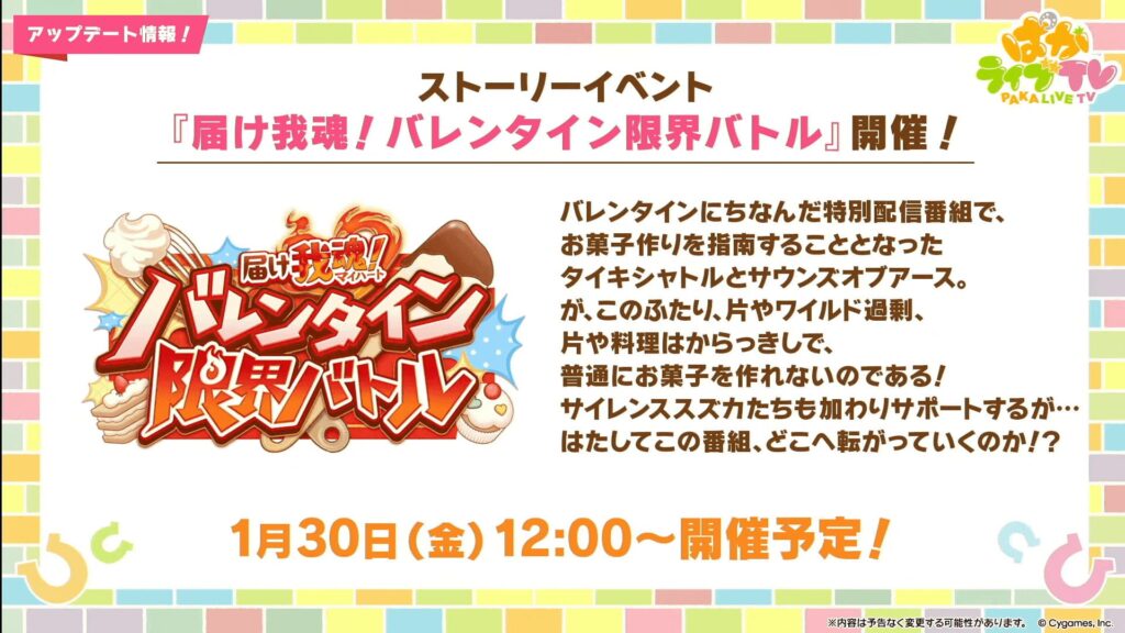 こちらも開催期間は、ガチャと同じ1/30 12:00 ~ 2/14 11:59までです。