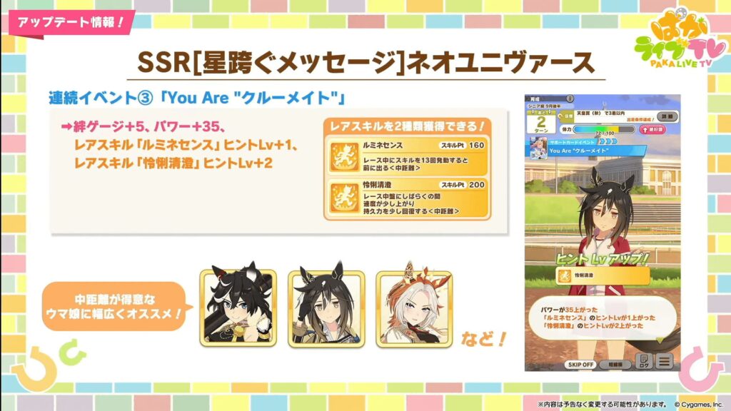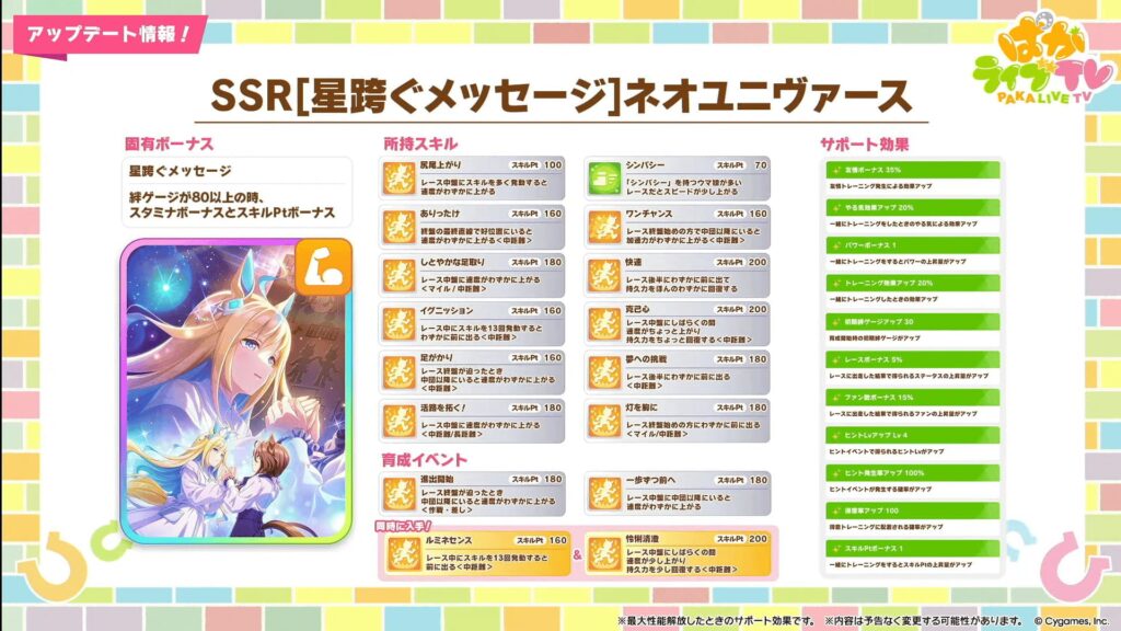 新衣装のネオユニヴァースやスキル「シンパシー」と併用すると強そう。